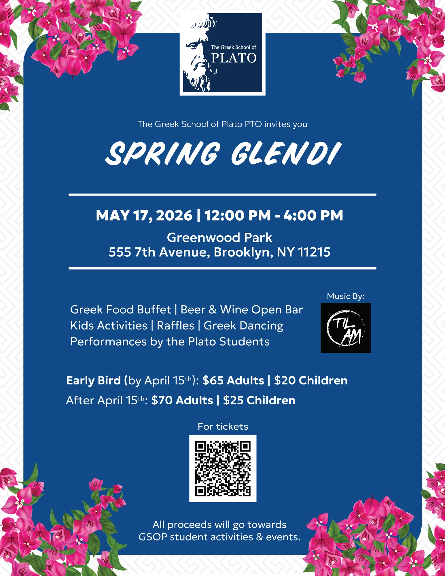 Tickets support student activities and Greek School of Plato programs, which have served Brooklyn since 1977 with language, culture, dance, and enrichment classes.