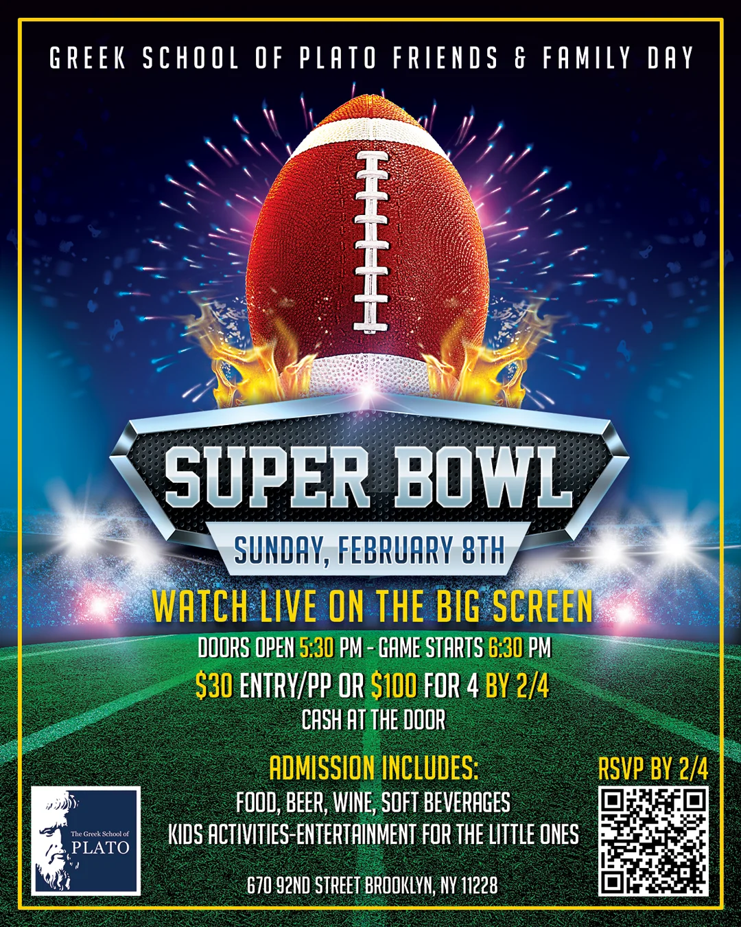 🏈 Super Bowl Sunday at Greek School of Plato! 🍻👨👩👧👦